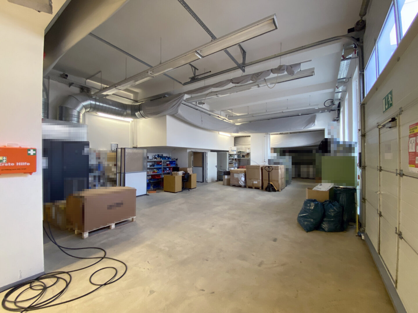 Die zur Miete stehenden Lager-/Produktionsflächen sind ebenerdig über ein Rolltor (B ca. 2,90 m x H ca. 3,85 m) erreichbar. Die Flächen weisen Höhe ab ca. 3,30 bis zu 3,80 m auf. In den Flächen sind teilweise Starkstromanschlüsse vorhanden.