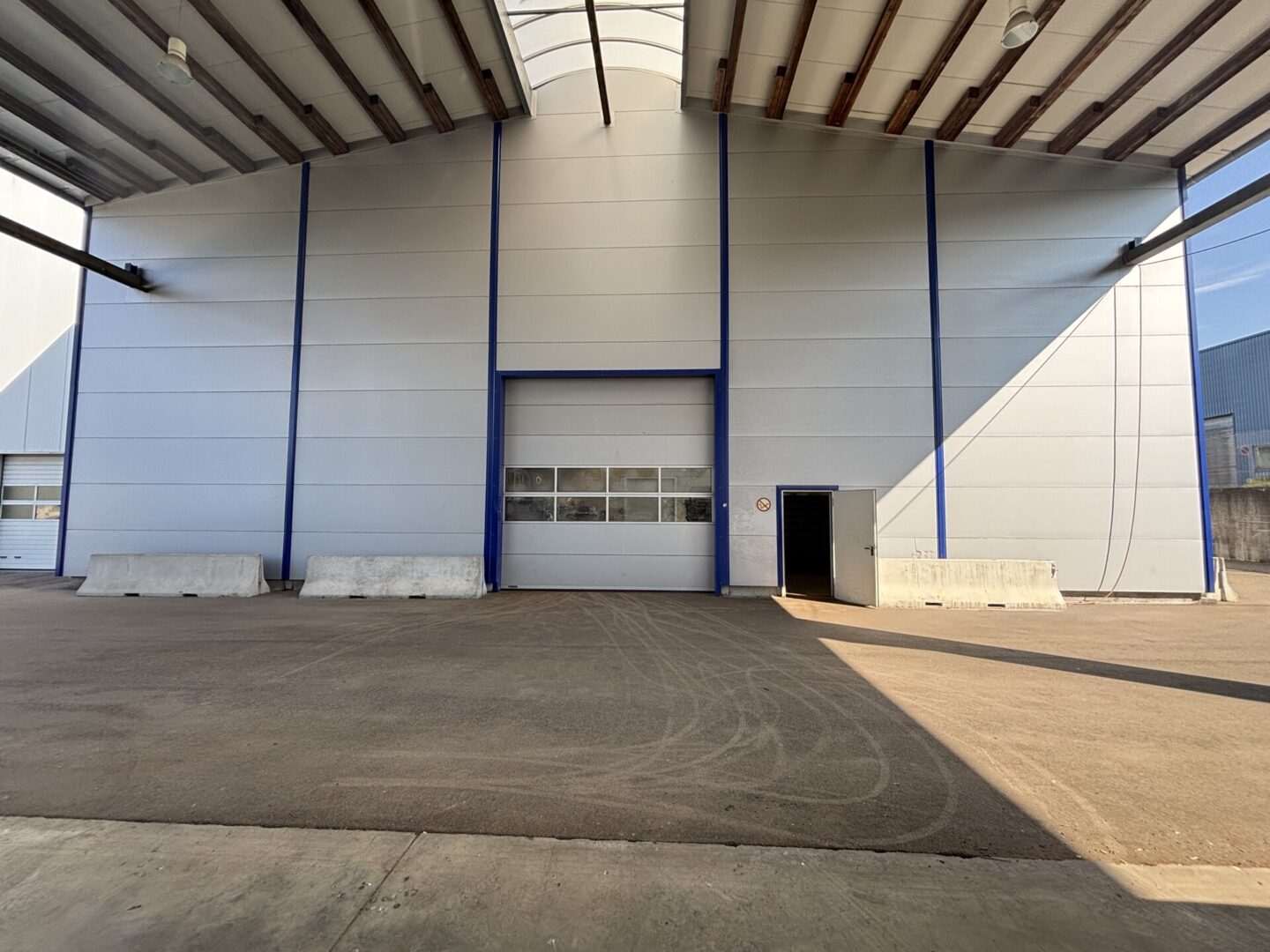 Andienung: Ebenerdig, 2 Sektionaltore (1 x Längsseite, 1 x Giebelwand)