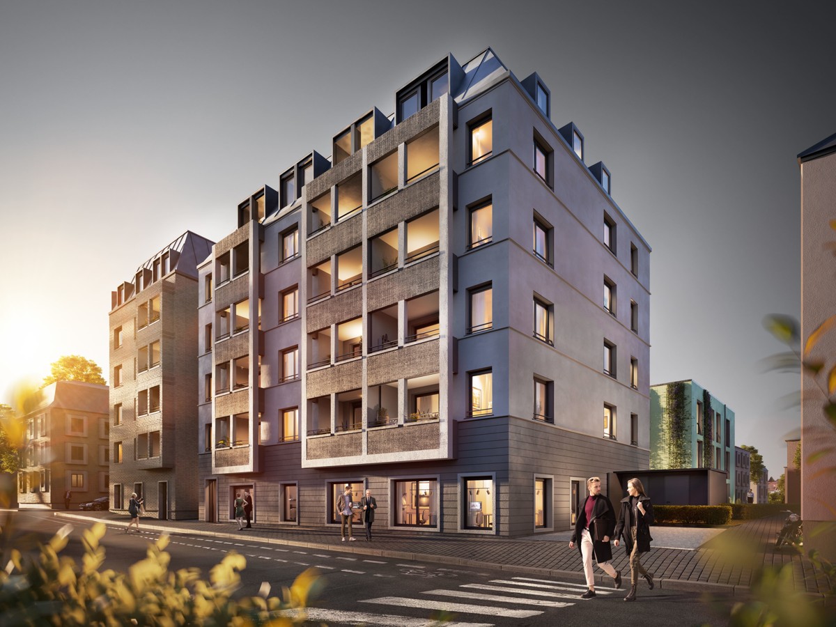 Die zur Miete stehenden Einheiten befinden sich im Erdgeschoss eines neu erbauten Wohn- und Geschäftshauses, das sich derzeit in den letzten Zügen der Fertigstellung befindet. Das Gebäudeensemble besteht aus zwei separaten Baukörpern, die als Haus A und Haus B deklariert sind.