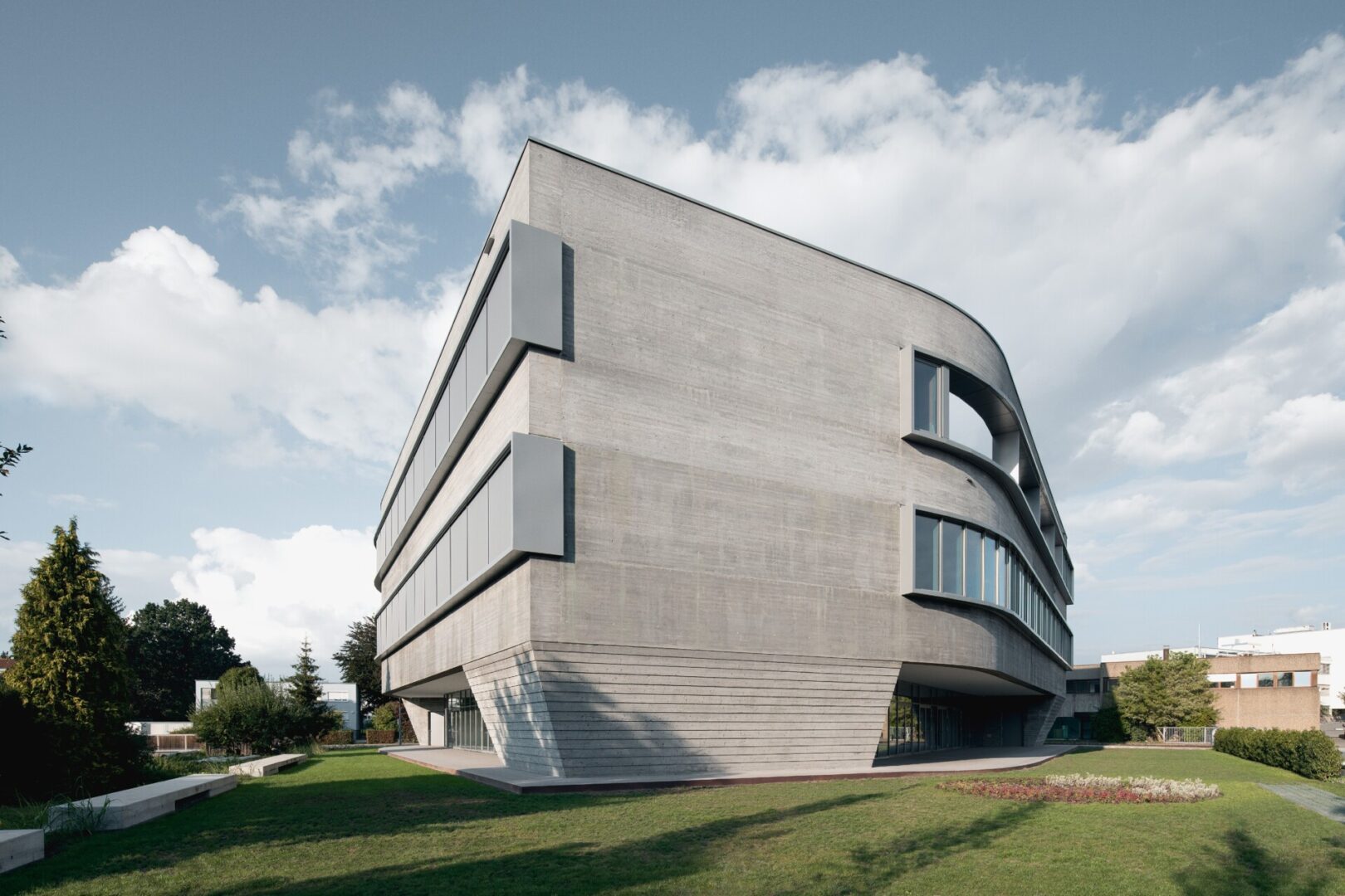 Der dreigeschossige Neubau wurde nach Plänen des renommierten Architekturbüros a+r Architekten realisiert und überzeugt durch seine unverwechselbare Formensprache. Der Baukörper in Form eines abgerundeten Dreiecks entfaltet eine skulpturale Präsenz mit hohem Wiedererkennungswert und verleiht dem Objekt eine außergewöhnliche Identität. Die Kombination aus architektonischer Klarheit, hochwertiger Materialität und funktionaler Nutzbarkeit schafft ein repräsentatives Umfeld für anspruchsvolle Unternehmensnutzungen.